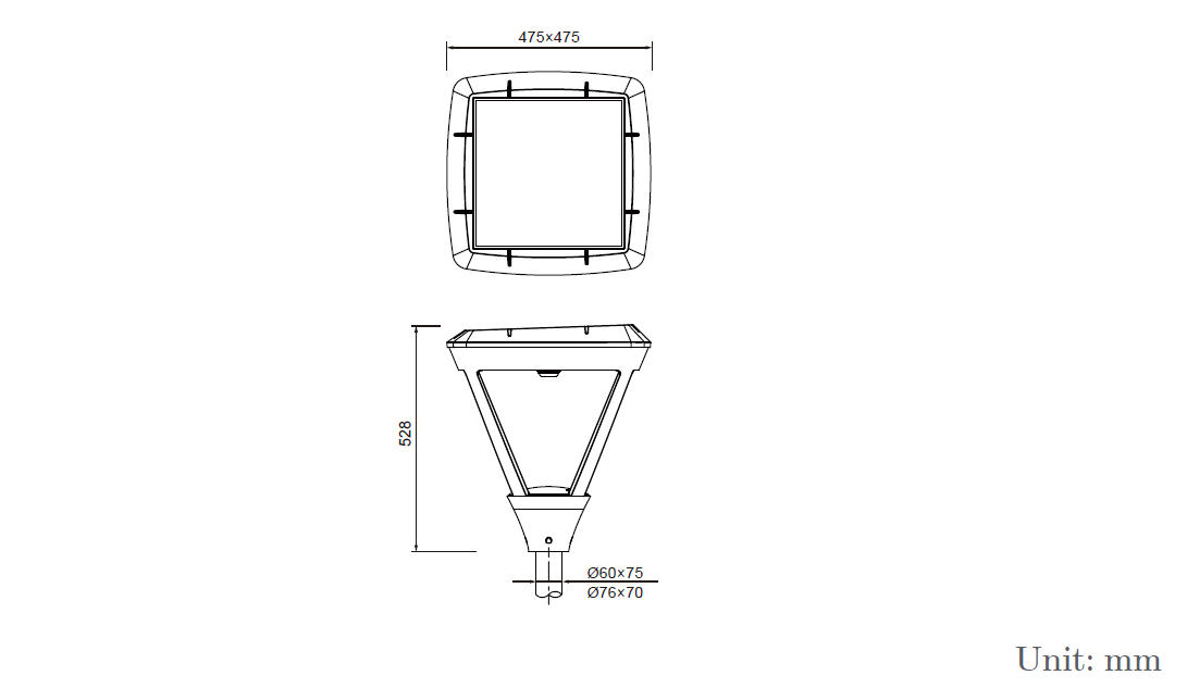 - Optics with PC lens with high visual comfortable and uniform lighting distribution, multiple light distribution options.