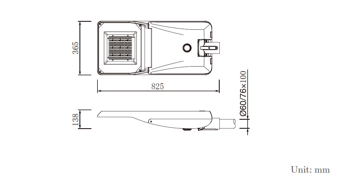 - Top and side fixing, angle can be adjustable, installation tube diameter φ76/φ60mm.