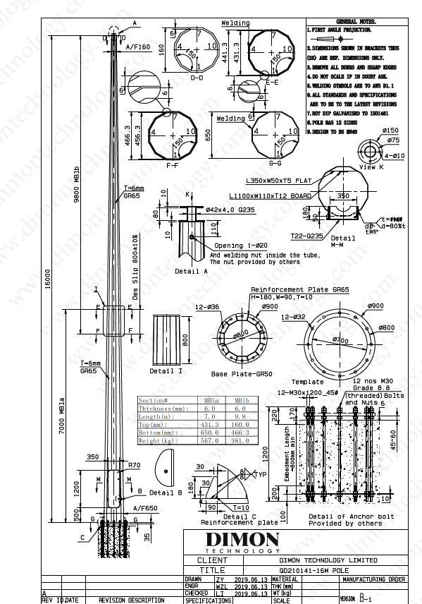 16m Lightning Column and Wind Load Design Report