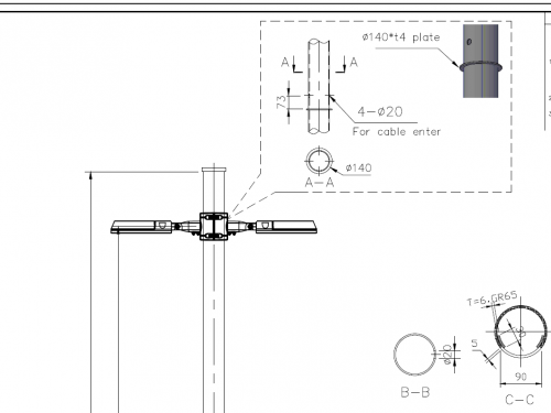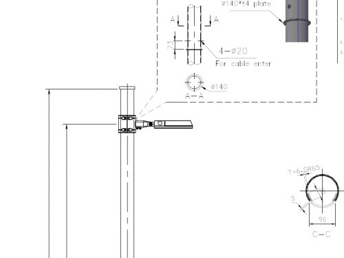 - Street Lighting or Garden Lighting Pole equipped with short spigot arm suited for a wide range of applications ranging from a residential area or park area.