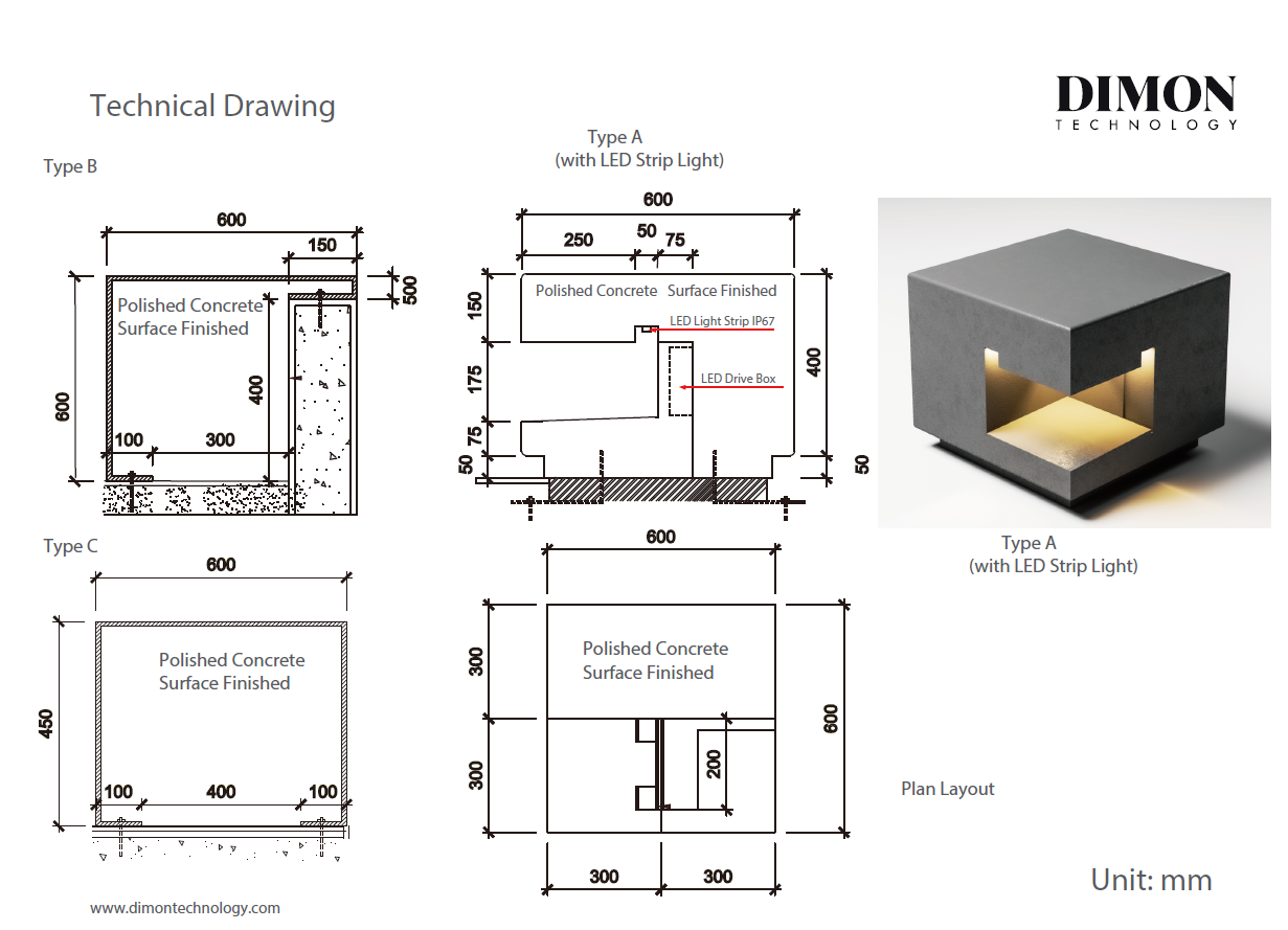 Detail refer to Technical Drawing-GRC Barrier Bench -008