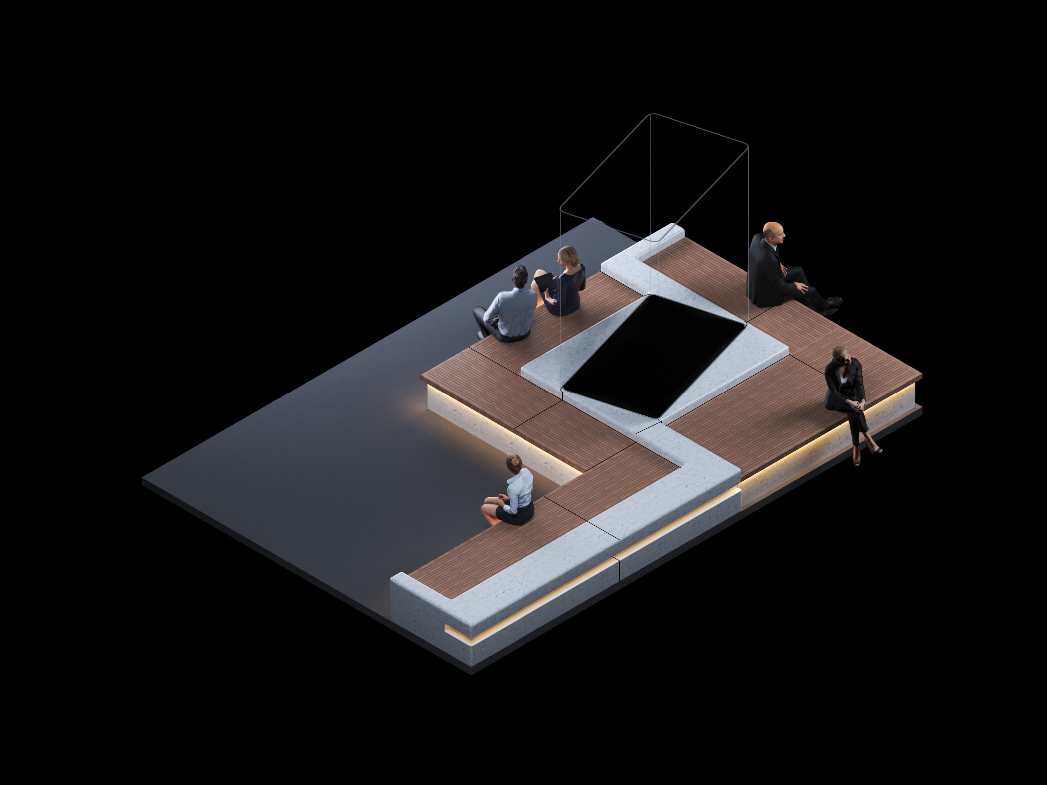 Materials: GRC Concrete Plinth , Autoclave Teak Timber and Painting Steel