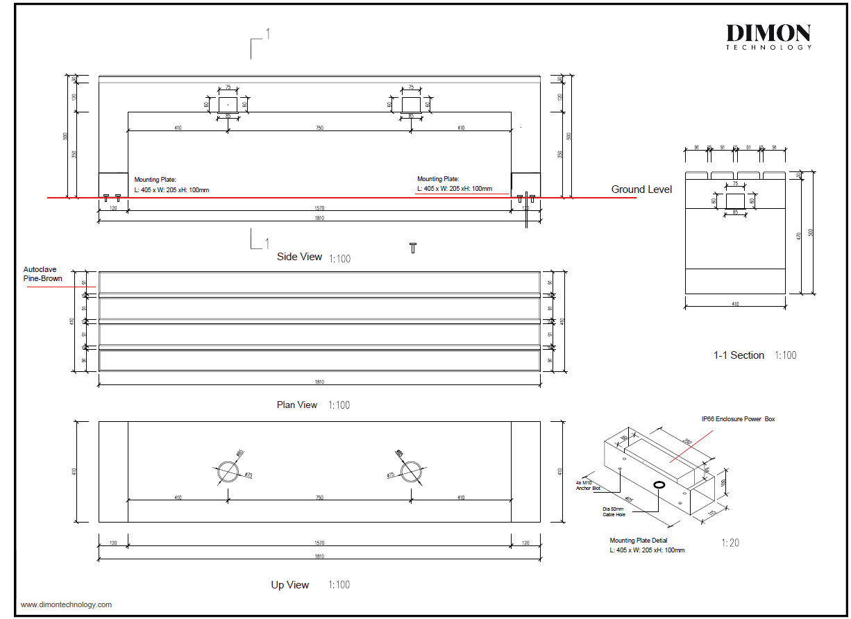 - Materials: Autoclave Teak Timber and Stainless-Steel Frame