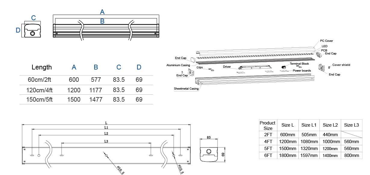 LED Slim Batten Light for replacing T5, T8, T10 fluorescent lamp;