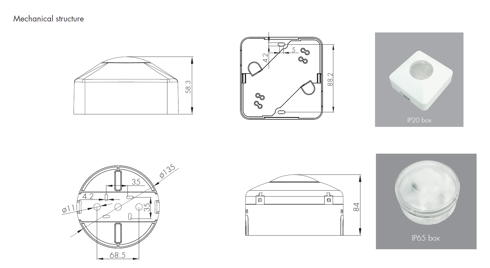 - Occupancy detector with on/off control suitable for indoor use.