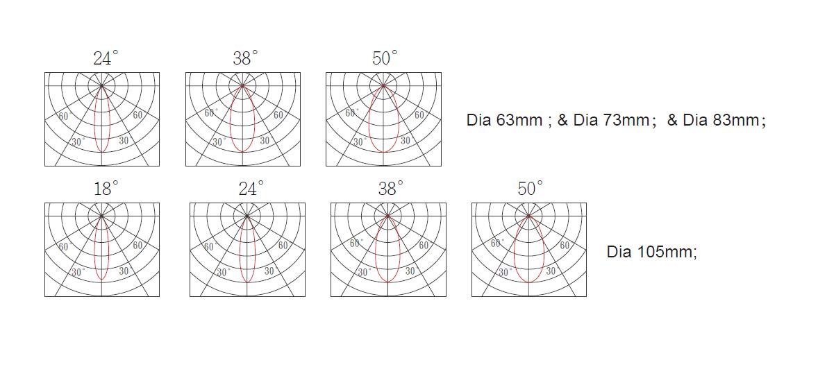 1x10W @ Dia 73 @ Dia 83 @ Dia 105 mm