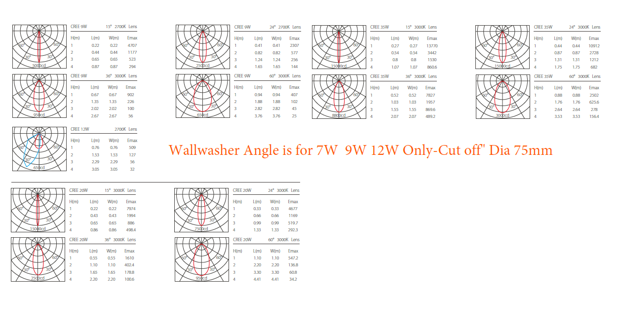 - 15° 24° 36° 60° Wallwasher Asymmetric Angle