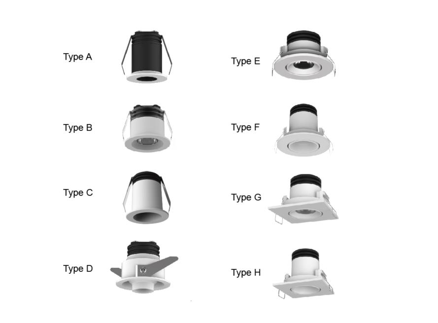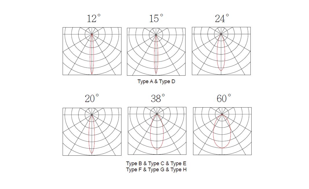 • 20°     38°    60° @ Type B & Type C & Type E & Type F & Type G & Type H