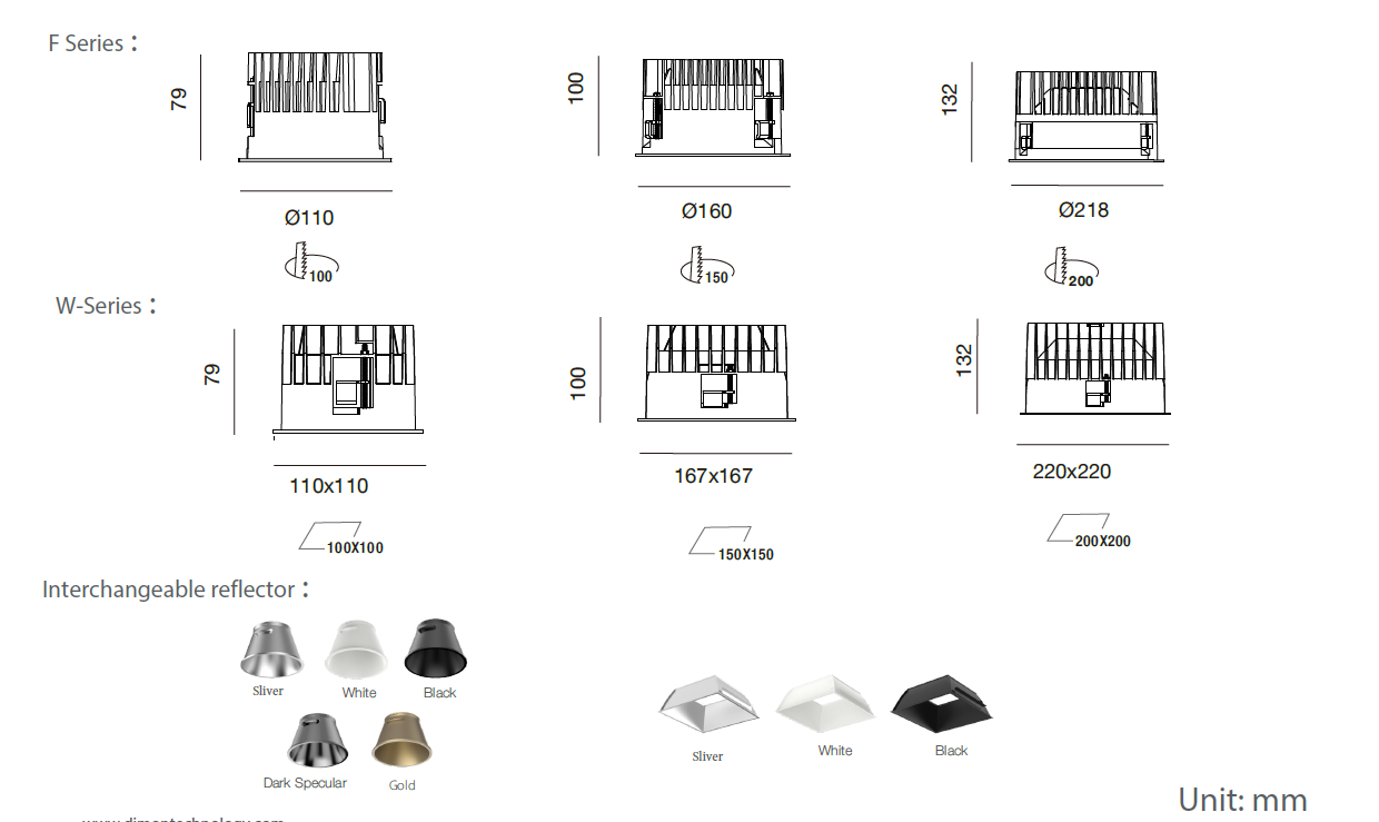 - 110x110xH:79mm Cut-off: 100x100mm