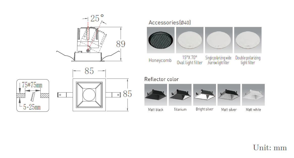 Recessed Mount Type : Tilted-Angle- Type (25° tilt )