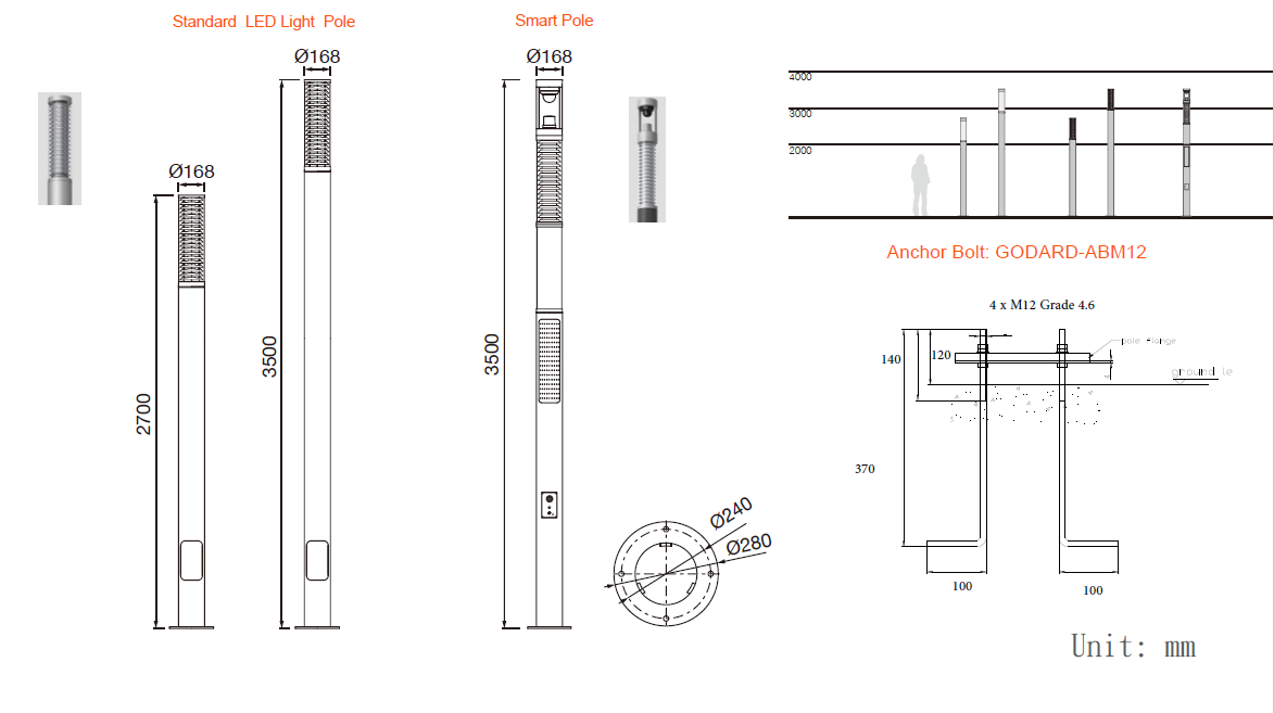 - Die-casting aluminium top cover, extruded aluminaium column pole, with anti-UV PC transparent diffuser.