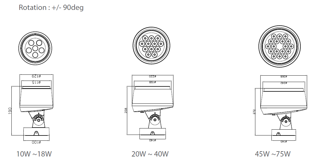 • Dia 268mm x H: 272mm :     45W         50W      55W        60W        65W      70W          75W