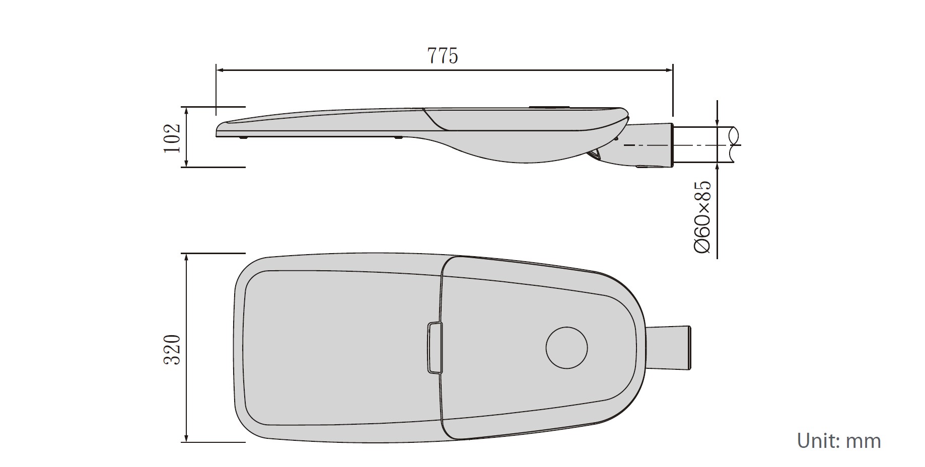 適合直徑60mm燈杆安装頂部安裝或側面安裝
