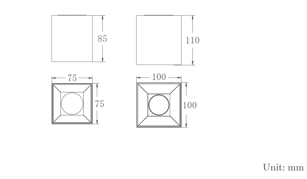- 15W@ L75 x W75mm @ L100 x W100mm